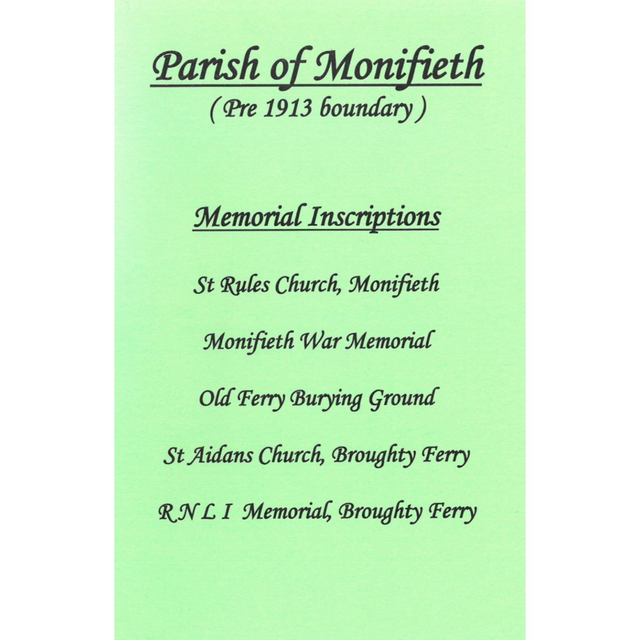 Monumental Inscriptions, includes: St Rules Church, Monifieth; War memorial, Monifieth; Old Burial Ground, Broughty Ferry; St Aidan's Church, Broughty Ferry; RNLI Memorial Plaque, Broughty Ferry;