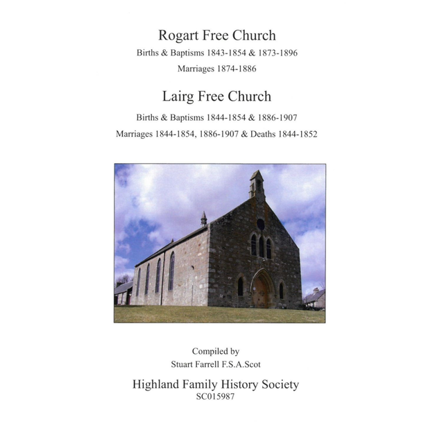 Rogart Free Church Births and baptisms 1843-1854 & 1873-1896; Marriages 1874-1886. Lairg Free Church births and baptisms 1844-1854 & 1886-1907; Marriages 1844-1854, 1886-1907; Deaths 1844-1852.